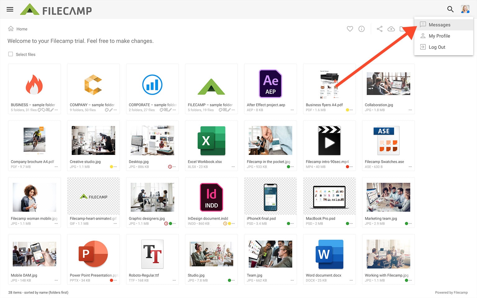 Navigate to the Messages by clicking on your Avatar in the Top Bar.